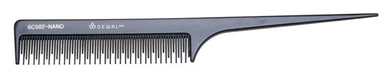 Расческа черная рабочая DEWAL NANO с металлическим хвостиком, антистатик, 21,5 см