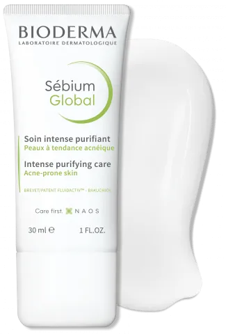 Sébium Global — это инновационный продукт, адаптированный к потребностям кожи, склонной к акне, который воздействует как на причины (1), так и на симптомы (2) проблем с акне:
