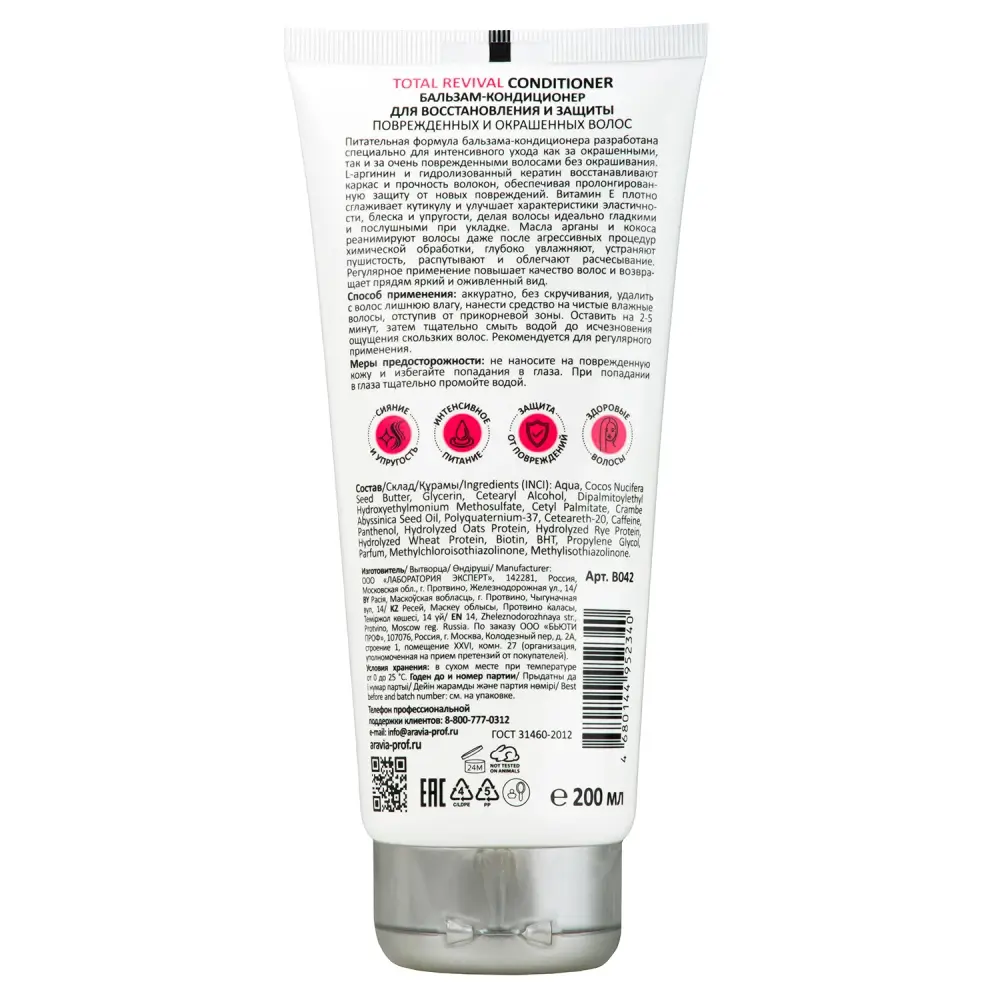 Биоактивный состав: L-аргинин, масло арганы, масло кокоса, витамин E, гидролизованный кератин.