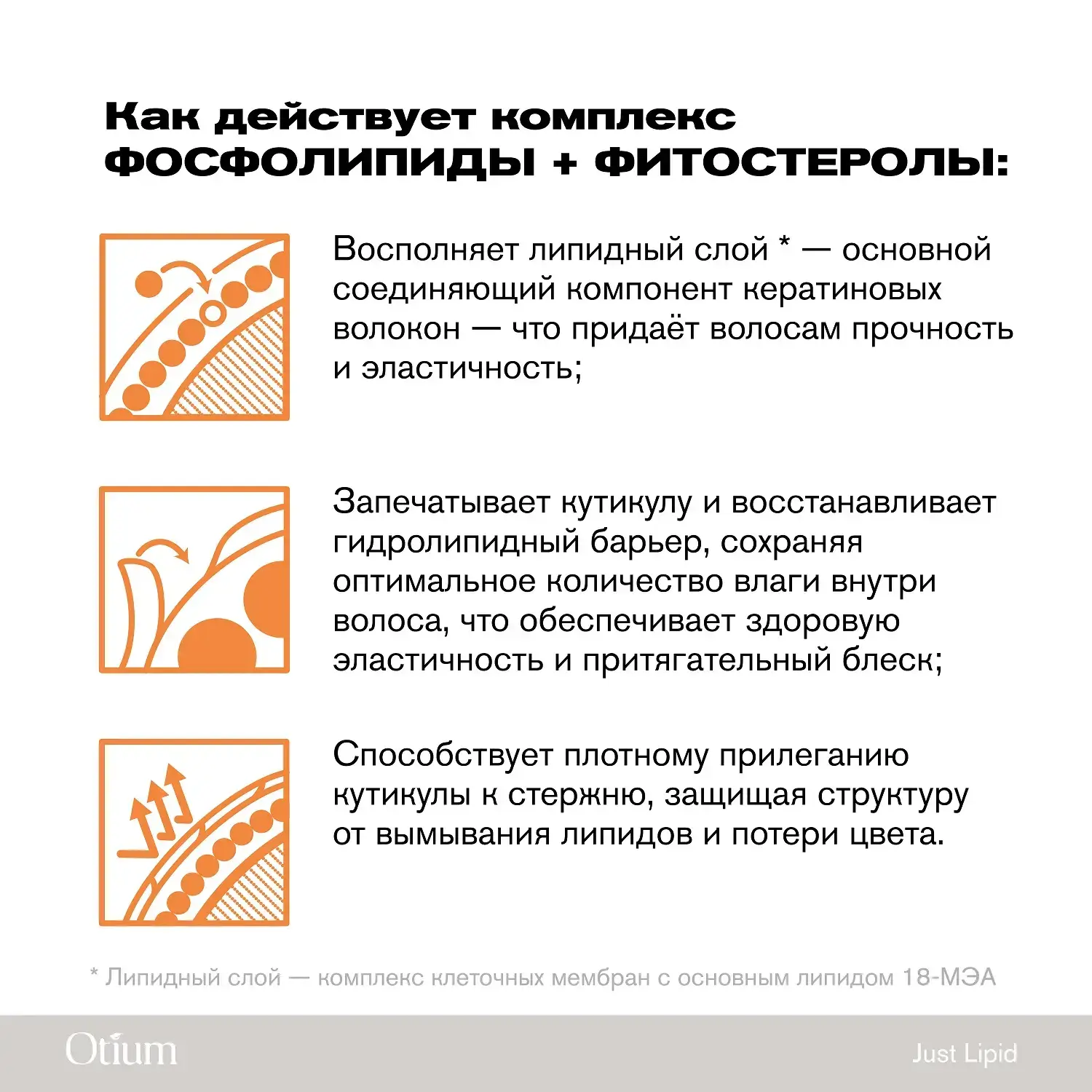Линия Otium Just Lipid обеспечивает волосам интенсивное восстановление, комплексную защиту и устойчивую красоту.