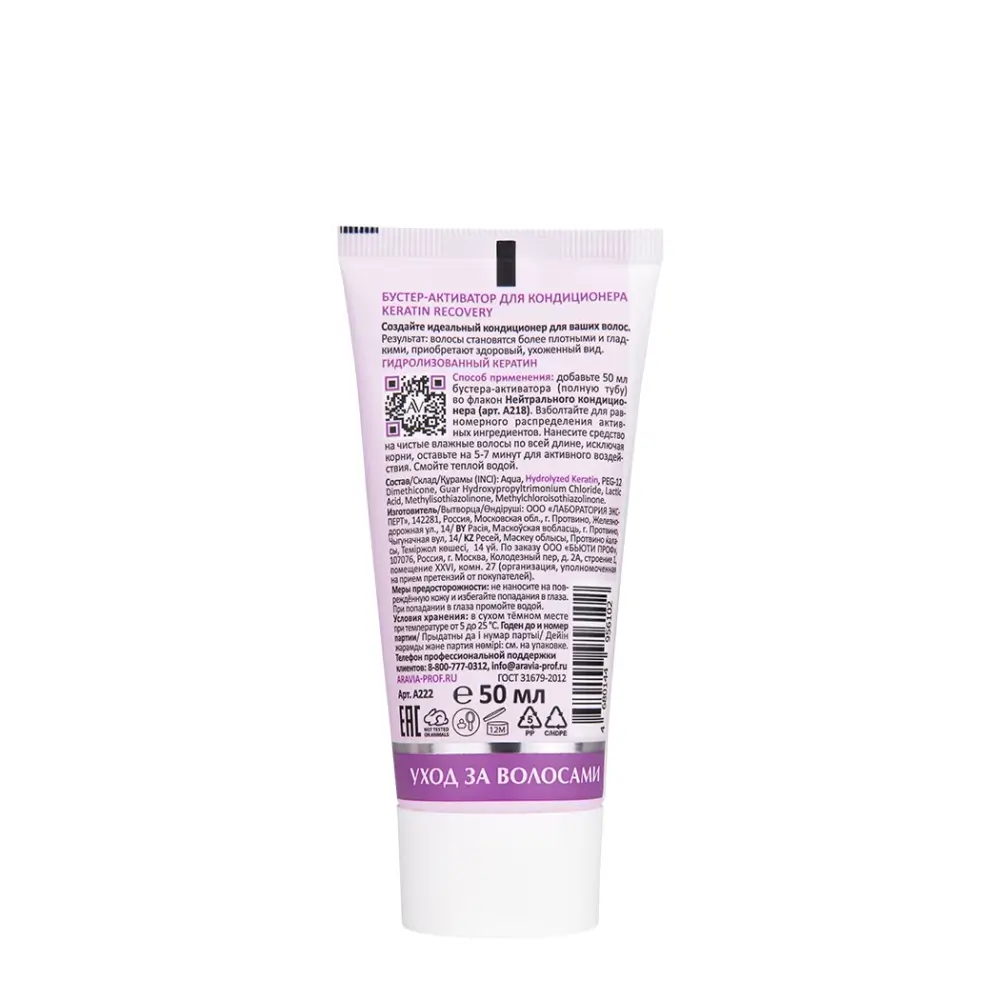 Применение: Добавьте 50 мл бустера-активатора (полную тубу) во флакон Нейтрального кондиционера (арт. А218). Взболтайте для равномерного распределения активных ингредиентов. Нанесите средство на чистые влажные волосы по всей длине, исключая корни, оставьте на 5-7 минут для активного воздействия. Смойте теплой водой.