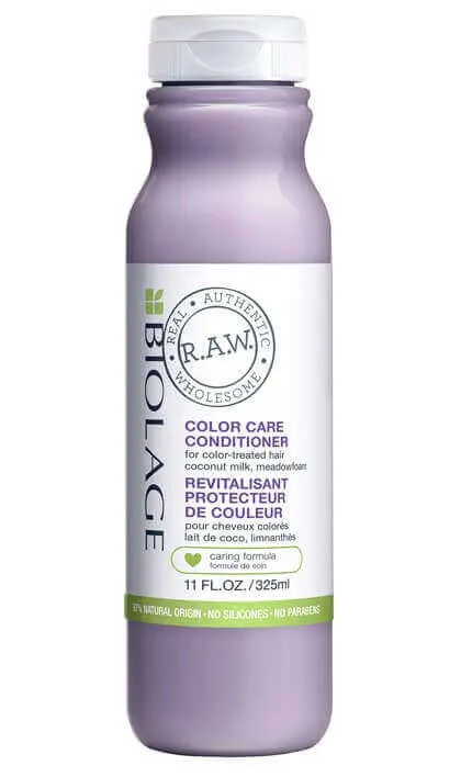 Кондиционер для окрашенных волос с кокосовым молочком и луговыми травами Biolage R.A.W. Color Care сохраняет стойкий и насыщенный цвет локонов. Молоко кокоса увлажняет волосы и не позволяет им пересушиваться. Экстракт пенника лугового делает их сильнее, эластичнее, мягче и гибче. Кондиционер РАУ Колор Кэа дарит волосам естественный блеск. Он препятствует спутыванию волос в процессе мытья и облегчает расчесывание.