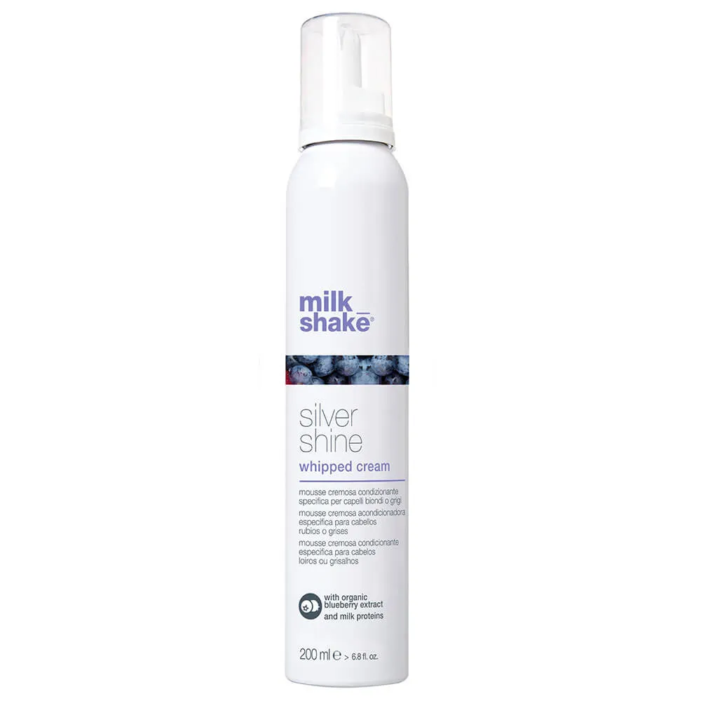 Milk_shake Silver Shine Whipped Cream нейтрализует желтые тона и деликатно кондиционирует волосы одним движением. Специальный фиолетовый пигмент и смесь органических экстрактов ягод в сочетании с молочными протеинами и Integrity 41 * сохраняют цвет волос, нейтрализуя нежелательные желтые тона. Также можно распутать волосы, делая светлые, осветленные, седые или белые волосы мягкими и блестящими.