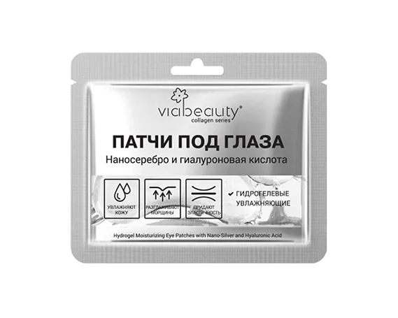 Коллагеновые патчи для кожи вокруг глаз с частицами серебра VIA BEAUTY – уникальный нанотехнологический продукт. Наночастицы серебра оказывают омолаживающий эффект, способствуют стимуляции защитных сил кожи, снимают отечность и выступают барьером от воздействия окружающей среды.