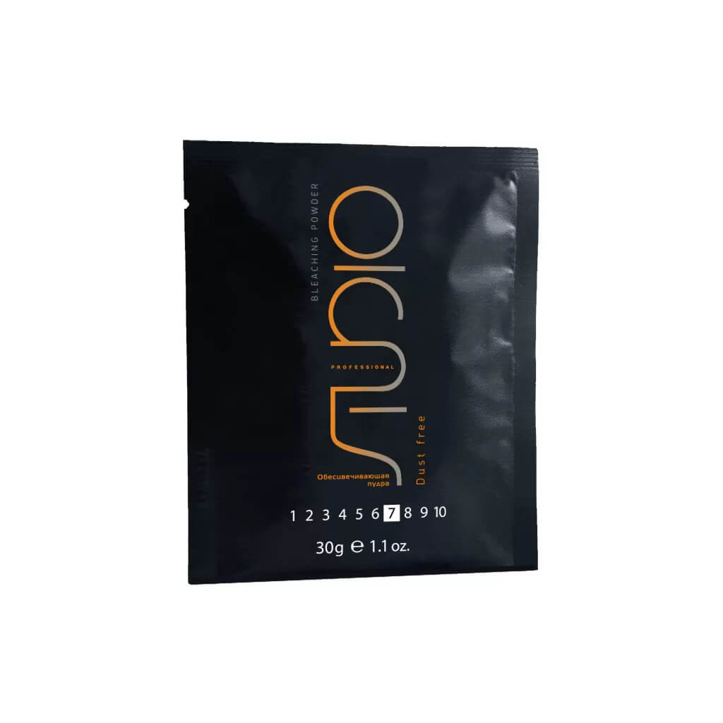 Обесцвечивающий порошок DUST FREE серии Studio универсального действия предназначен для любых работ по обесцвечиванию: осветления, полного обесцвечивания, создания бликов или эффекта выгоревших волос, мелирования и т.д. Позволяет добиться осветления до 6-7 тонов. Непылящая формула порошка создана для комфортной работы мастера. Каолин и Maltodextrin (-полимеры глюкозы)-, входящие в состав препарата, оказывают увлажняющее и защитное действие, обеспечивая тем самым более щадящее воздействие на волосы, максимально снижая риск раздражения кожи головы. Содержит сине-фиолетовые нейтрализующие агенты, которые действуют как оптический отбеливатель и эффективно борются с желтыми и оранжевыми пигментами на фонах осветления.Легко смешивается с «ActiOx» 1,5%-, 3%-, 6%-, 9%-, образуя однородную массу, которая не высыхает и не течет во время нанесения. Подходит для всех типов волос.