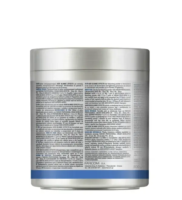Обесцвечивающий порошок SERI BLONDE EFFECTS разработан для использования во всех процессах обесцвечивания и осветления натуральных или окрашенных волос.