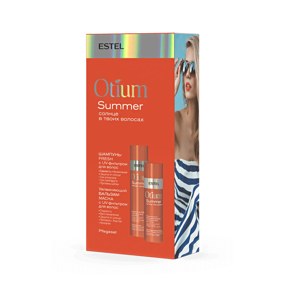 Шампунь-fresh c UV-фильтром для волос OTIUM SUMMER, 250 мл Мягко очищает, освежает и увлажняет кожу головы. Протеины шёлка кондиционируют волосы, придают им гладкость. Соки апельсина и грейпфрута богатые витаминами оказывают антиоксидантное действие и увлажняют волосы и кожу головы.