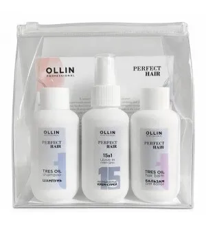 1. Восстанавливающий шампунь OLLIN PERFECT HAIR, 100 мл: его мягкая формула очищает волосы и кожу головы, защищает от сухости и питает благодаря формуле TRES OIL: масло жожоба дарит природный блеск, инка-инчи защищает от вредного влияния окружающей среды и восстанавливает повреждения, а масло оливы делает локоны послушными и придает им яркость.