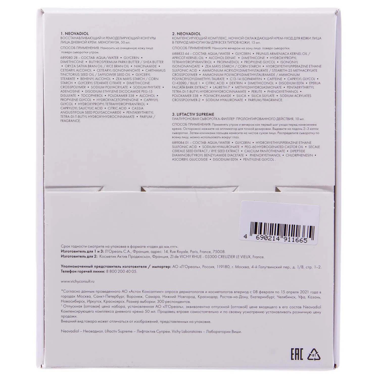 Дневной крем: вулканическая вода Vichy, обогащенная 15 минералами, Проксилан, Экстракт Кассии, Витамин B3 и Омега 3-6-9 из растительных масел.