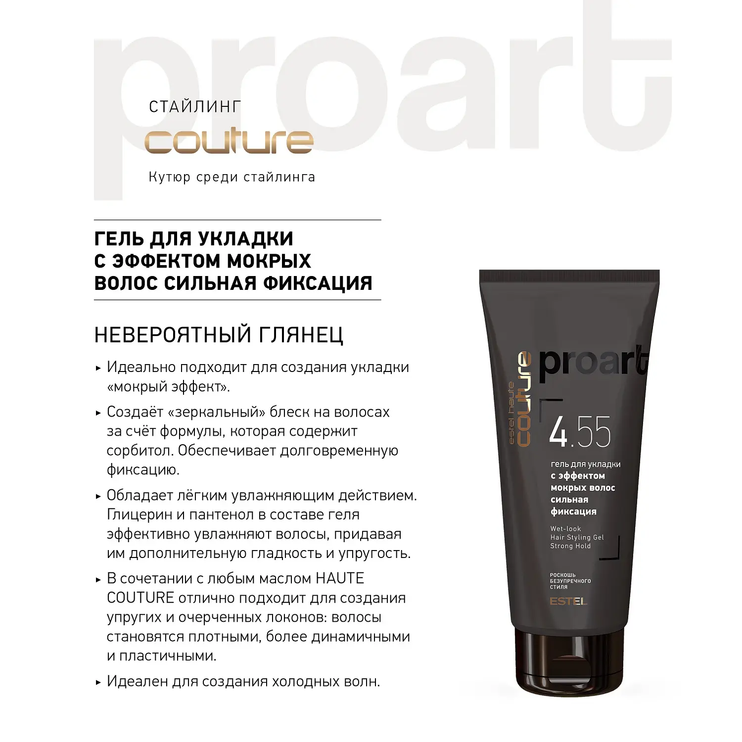 Гель быстросохнущий для укладки волос 4.5 SATEEN ESTEL HAUTE COUTURE cильная фиксация