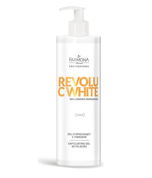 Farmona Professional Revolu C White Гель-эксфолиант с кислотами для лица подходит для любого типа кожи с гиперпигментацией: с пигментными пятнами - гормональными, возрастными, после угрей и инсоляции; для серой, уставшей кожей с пигментацией.