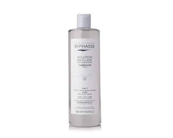 Мицеллярный раствор BYPHASSE с активированным бамбуковым углем представляет собой очищающую воду, в которой сочетаются мицеллы (мелкие частицы поверхностно–активных веществ) и активированный уголь, придающие коже глубокую чистоту. Средство 4 в 1, поскольку эффективно очищает, удаляет макияж, обеспечивает защиту и восстанавление кожи.