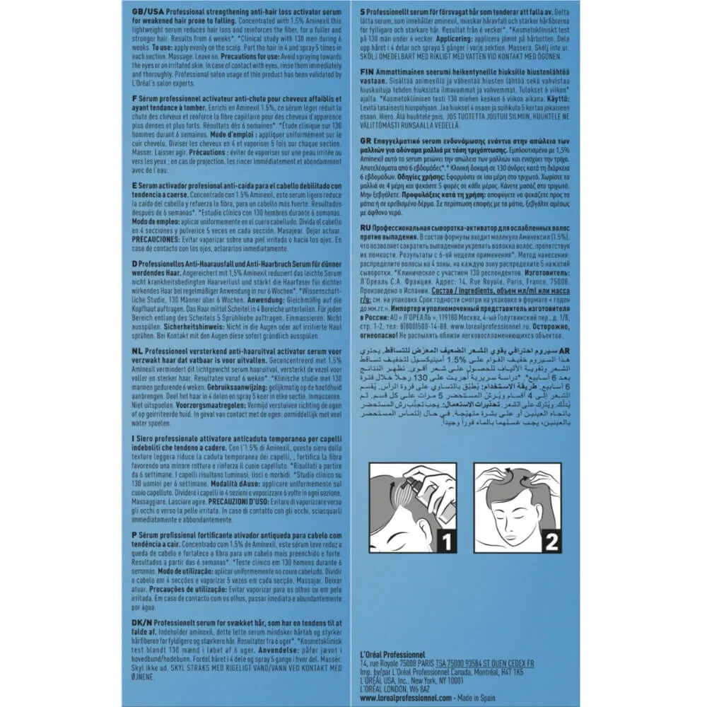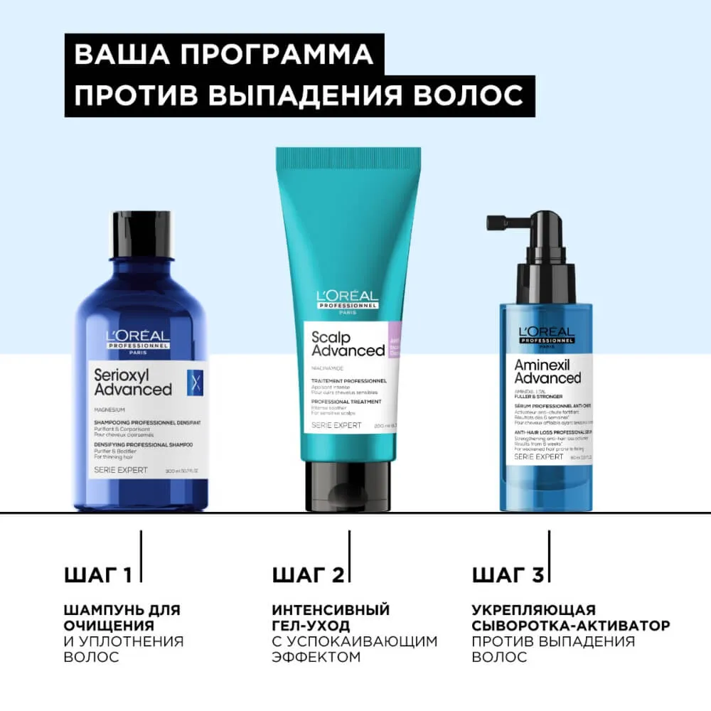 В состав формулы входит 1,5% молекулы Аминексила, что позволяет сократить выпадение и укрепить волокна волос, препятствуя их ломкости.