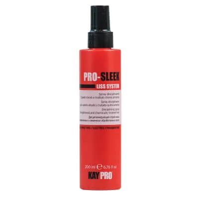 Дисциплинирующий спрей-маска для химически выпрямленных волос Pro Sleek с маслом какао, сладкого миндаля, кератином и глиоксиловой кислотой.