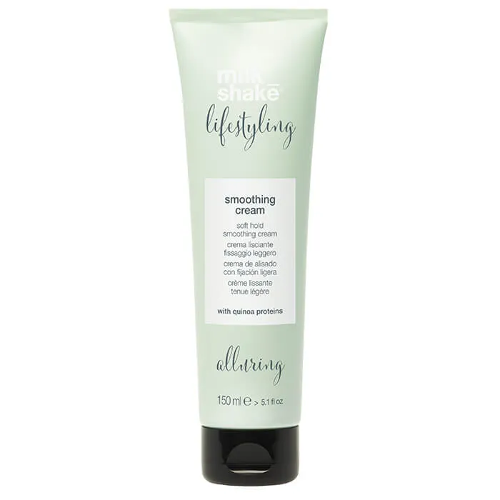 milk_shake Разглаживающий крем Lifestyling со специальным силиконом создает прозрачную пленку, которая разглаживает, защищает и кондиционирует волосы, не делая их тусклыми. Специальные смягчающие вещества кондиционируют волосы и облегчают расчесывание во время укладки, а фиксирующий пленкообразующий агент помогает создавать устойчивые гладкие прически.