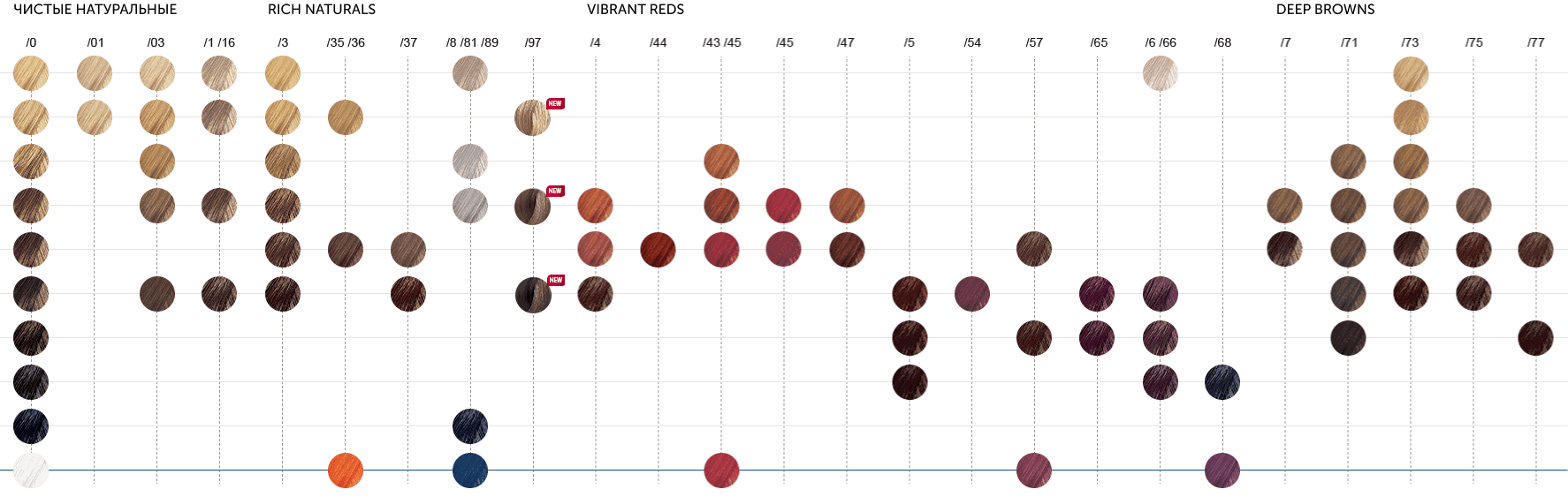Оттенки ColorTouch и Koleston Perfect идеально сочетаются и дополняют друг друга. Тона базовой линии ColorTouch объединены в группы, соответствующие группам оттенков Koelston Perfect, что позволяет легко найти необходимый оттенок ColorTouch: Чистые Натуральные, Насыщенные Натуральные, Глубокие Коричневые, Яркие Красные и Микс тона.