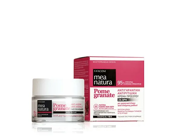 Гранатовый омолаживающий 24-х часовой крем для лица интенсивного действия, против морщин и признаков старения кожи. Содержит органическое масло гранатовой косточки, известное своими омолаживающими и антиоксидантными свойствами, насыщен ингредиентами анти-старения и компонентами предотвращающими появление и разглаживающими морщины.