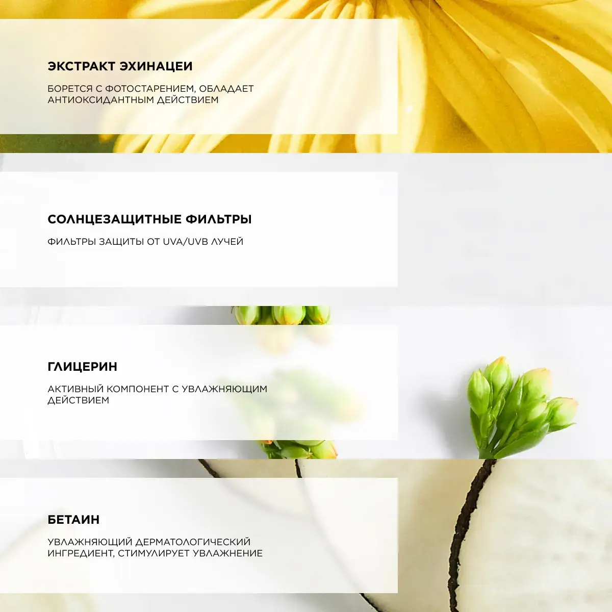 - Обогащенный антиоксидантом экстрактом эхинацеи, он обеспечивает антивозрастной уход, увлажняет кожу и способствует укреплению кожного барьера.