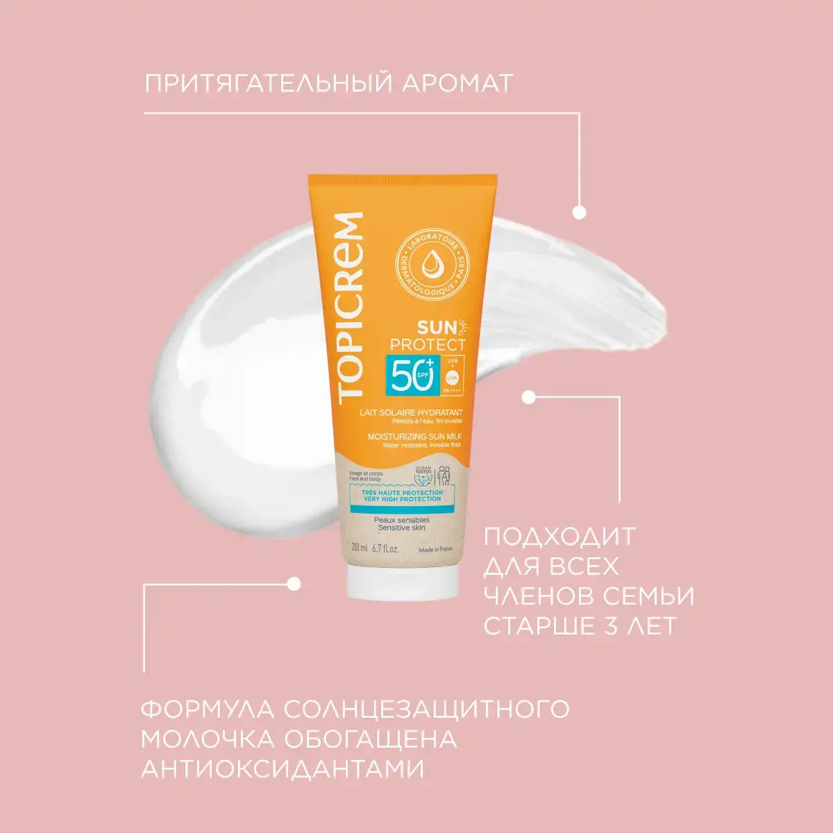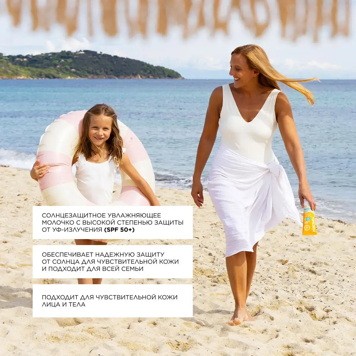 Солнечное молочко с защитой лица и тела для чувствительной кожи.