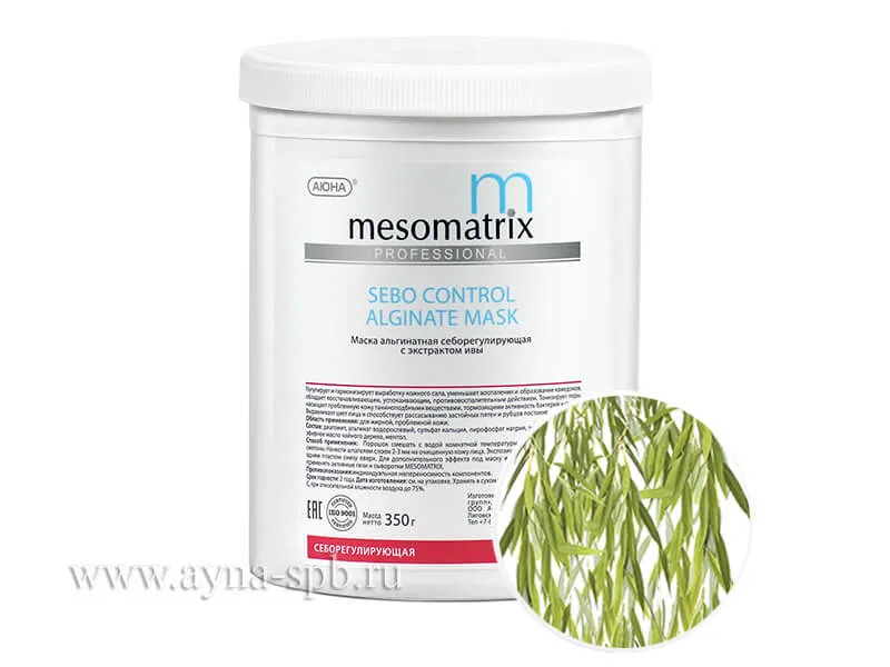 Альгинатная маска для жирной кожи регулирует и гармонизирует выработку кожного сала (себорегуляция), уменьшает воспаления и образование комедонов, обладает восстанавливающим, успокаивающим, противовоспалительным действием. Тонизирует поры, насыщает проблемную кожу экстрактом коры ивы, содержащим таниноподбные вещества, тормозящие активность бактерий и грибов. Альгинат в комплексе с экстрактом ивы выравнивает цвет лица и способствует рассасыванию застойных пятен и рубцов постакне.