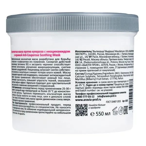 Профессиональная альгинатная маска разработана для борьбы с куперозом и профилактики его появления.
