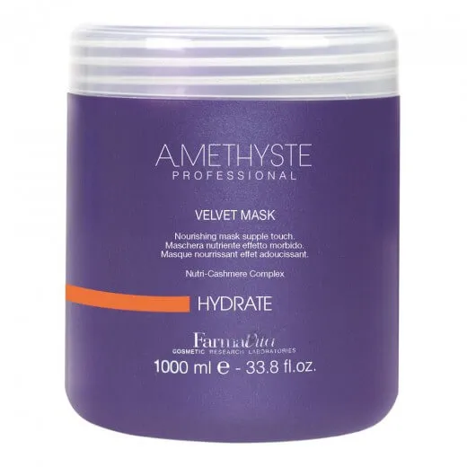 Макса интенсивного действия идеально подходит для волос любого типа. Она глубоко питает и увлажняет все типы без исключений. Кашемир, который входит в состав средства, надежно защищает ваши волосы: молекулы этого волшебного компонента обладают уникальными уплотняющими свойствами, умеют поглощать и использовать молекулы воды, тем самым поддерживая внутри волоса правильный водный баланс. Кроме того, маска обогащена глицерином и пантенолом, которые также оказывается укрепляющее и увлажняющее действие, глубоко проникают в структуру волос, балансируя уровень влаги. С маской Amethyste Hydrate Velvet Mask вашим волосам не грозит обезвоживание, а их блеск вас просто удивит!