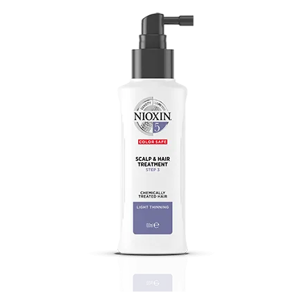 Питательная несмываемая маска Система 5 для кожи головы и для химически обработанных с тенденцией к истончению волос является заключительным этапом трехступенчатого ухода Nioxin, разработанного для освежения кожи головы и увеличения объема волос.