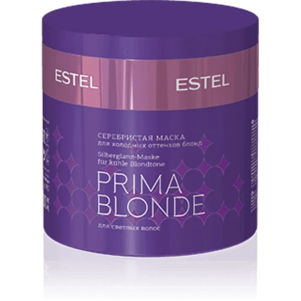 ESTEL PRIMA BLONDE Серебристая маска для холодных оттенков блонд обеспечивает максимальный ухаживающий эффект и заботу об идеальном ледяном блонде. Высокая концентрация полезных веществ восстанавливает повреждённую структуру волос, питает, увлажняет и укрепляет по всей длине. Волосы становятся шелковистыми, сильными, здоровыми и сверкающими, как серебро. Фиолетовые пигменты нейтрализуют желтый нюанс, амино-функциональный силоксановый полимер восстанавливает волосы, ланолин смягчает и укрепляет.