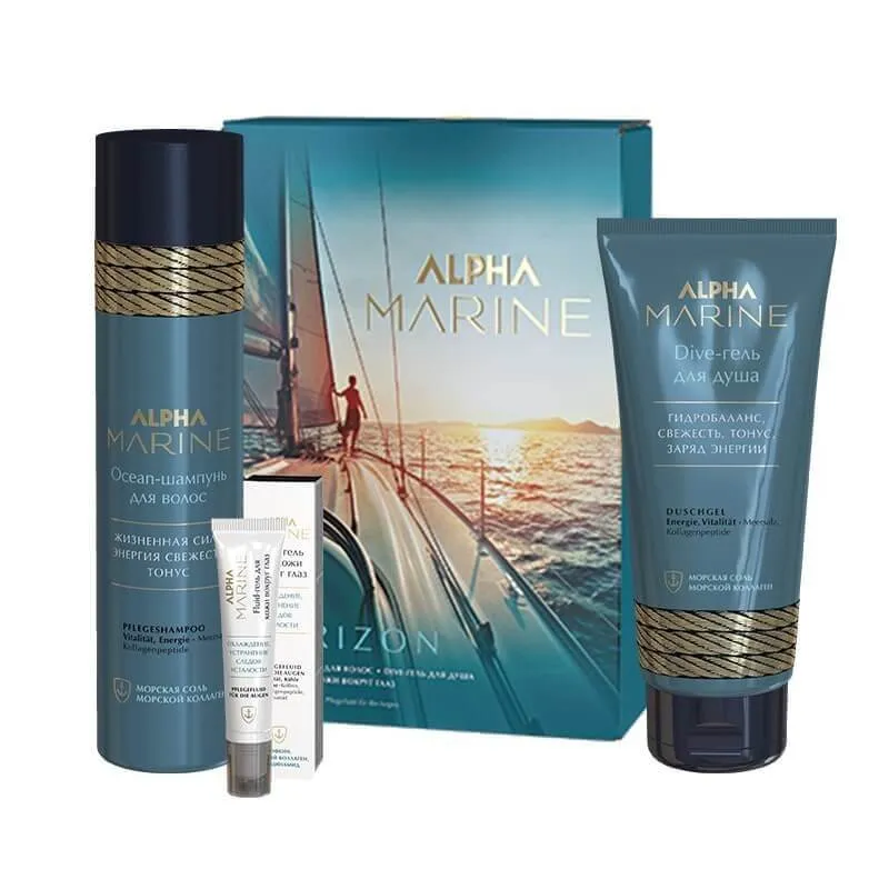 Шампунь: aqua, sodium laureth sulfate, potassium laureth-4 carboxylate, cocamide dea, ppg-3 caprylyl ether, parfum, limonene, linalool, butylphenyl methylpropional, sea salt, polyquaternium-10, lactic acid, soluble collagen (collagen marine), caprylyl glycol, citric acid, tetrasodium edta, methylchloroisothiazolinone, methylisothiazolinone Гель: water, citric acid, butylphenyl methylpropional, linalool, limonene, lactic acid, cocamidopropyl betaine, cocamide dea, sodium benzoate, perfume, marine collagen, menthol, sea salt, polyquaternium-7, sodium laureth sulfate, tetrazophenone-4, caprylyranyl glycol edta, potassium laureth-4 carboxylate Гель для глаз: кофеин, морской коллаген