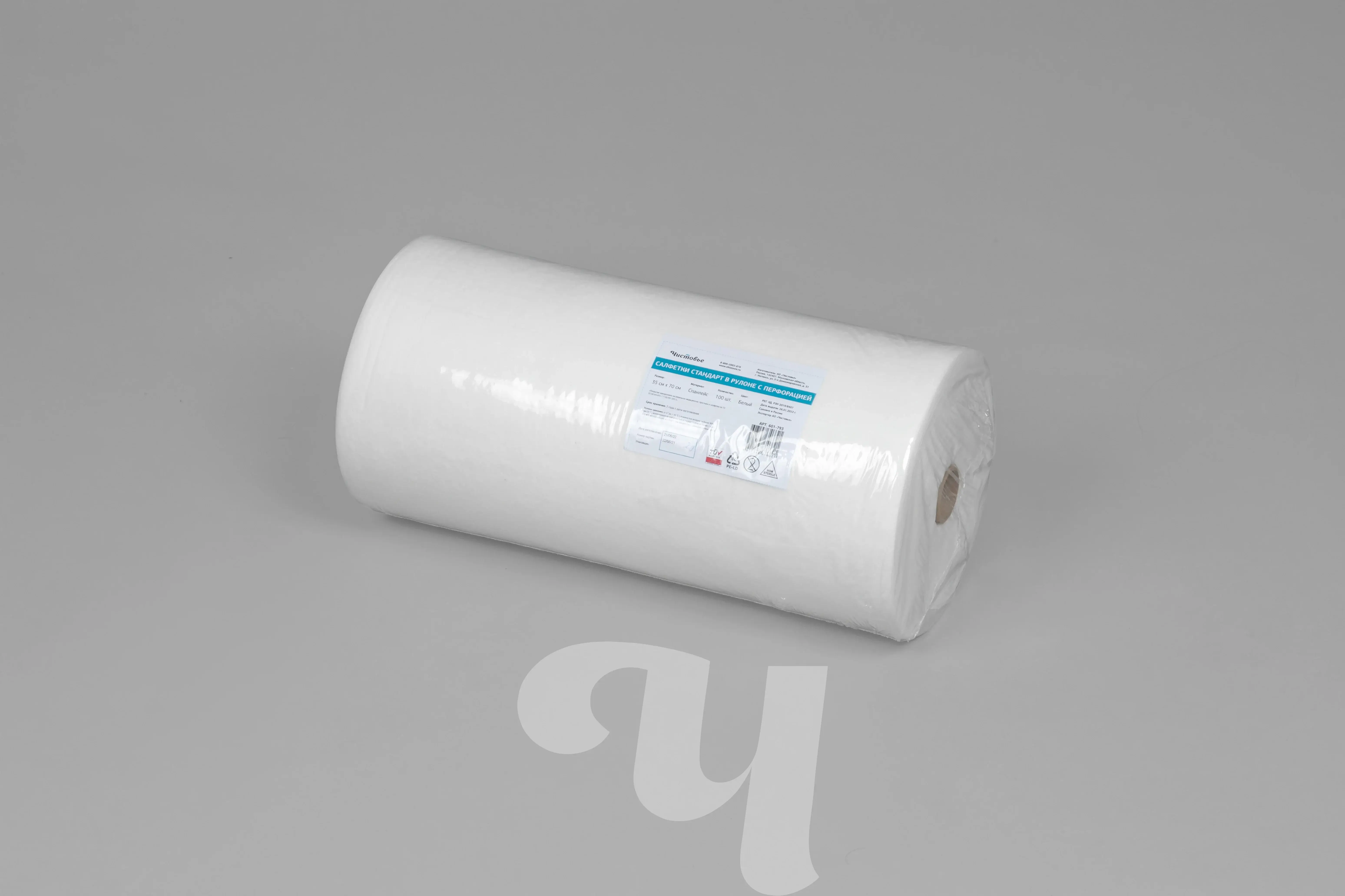 Одноразовые полотенца стандарт в рулонах изготавливаются из спанлейса плотностью 40 г/м2. Это наиболее экономичный вариант.