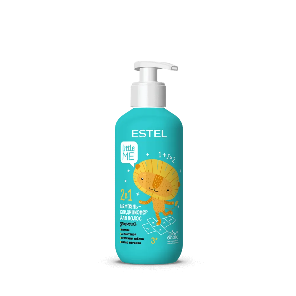 Детский шампунь-кондиционер для волос 2 в 1 ESTEL LITTLE ME. Бережно очищает и кондиционирует, предотвращает спутывание, защищает кончики от сечения, обеспечивает контроль статики, облегчает расчёсывание, разглаживает, придаёт шелковистость, мягкость и блеск, стимулирует естественную защиту волос и кожи головы.