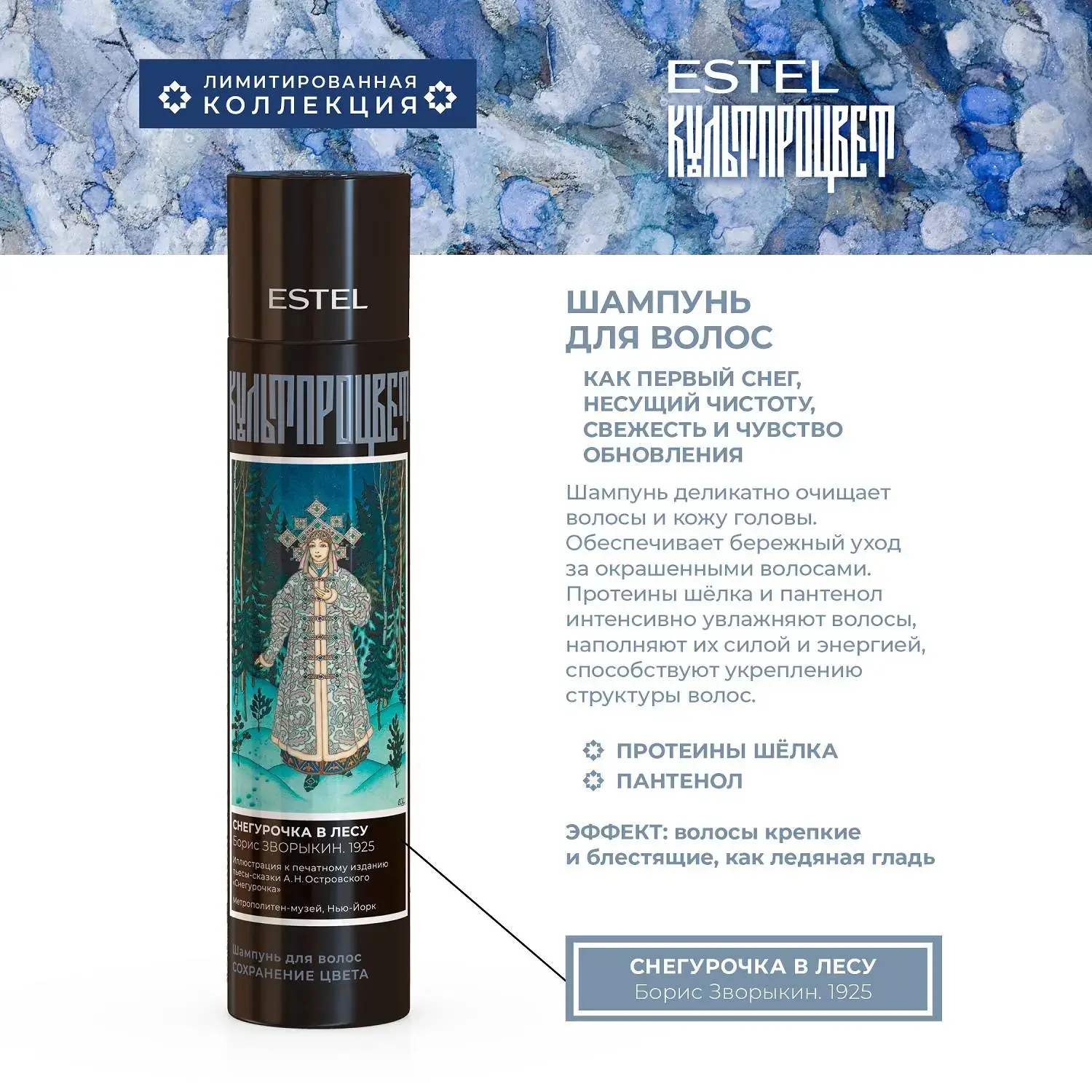 Культпроцвет – специальный проект Estel в сотрудничестве с музеями России, предоставившими репродукции великих картин для погружения в мир искусства и зимних чудес. Идея соединяет магию образа Снегурочки, силу искусства и современные формулы для ухода за волосами.