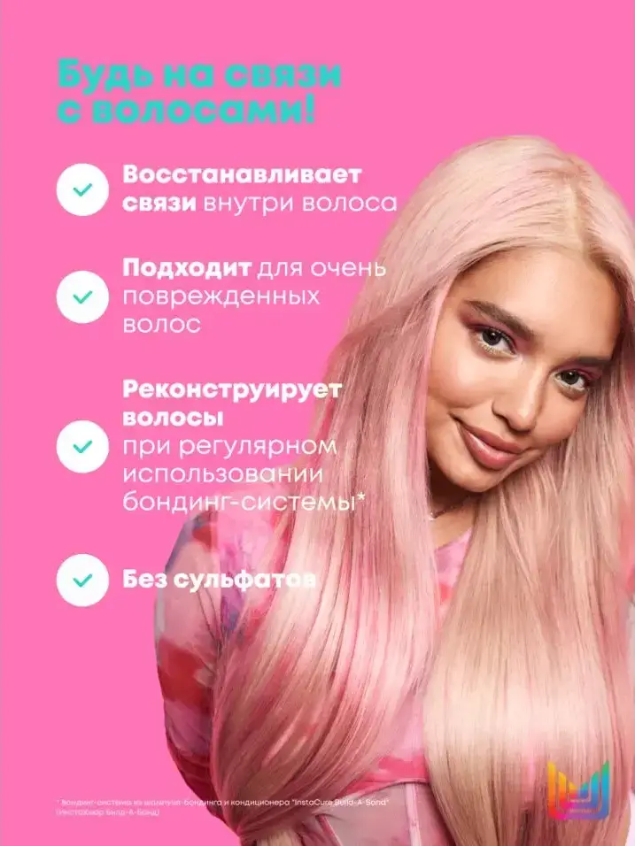 Для гладкости и укрепления волос используйте всю систему ухода Instacure Build-A-Bond: