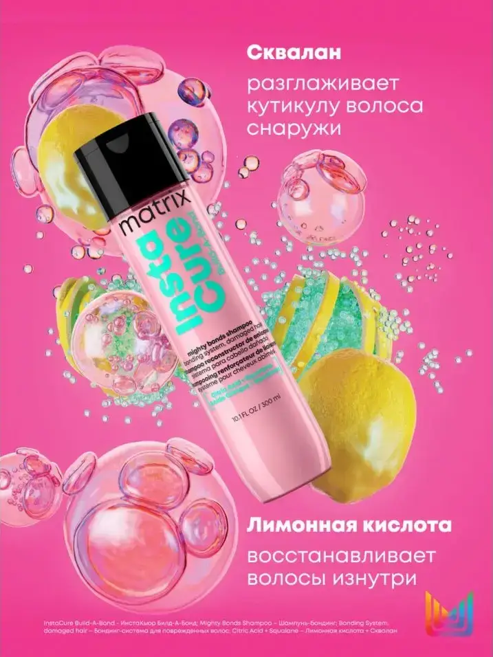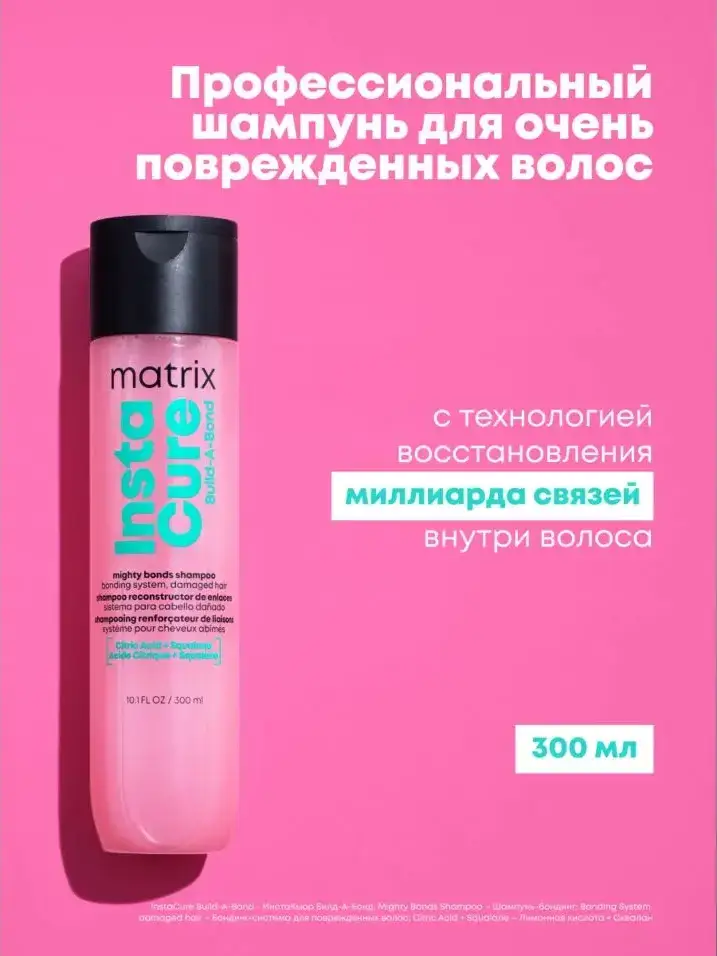 Профессиональный бессульфатный шампунь для восстановления поврежденных волос Instacure Build-A-Bond (Инстакьюр Билд-А-Бонд) подходит тем, кто думает, что волосы уже не спасти. Технология восстановления миллиарда связей внутри волос делает их в 8 раз* сильнее.
