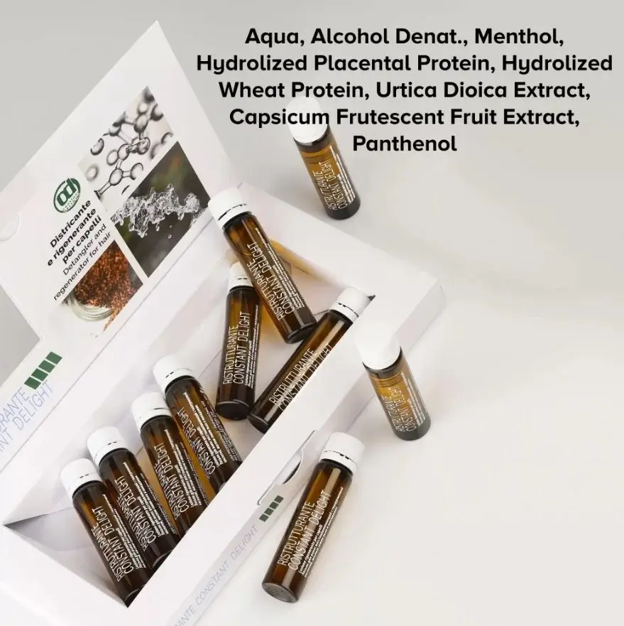 Специальная формула, схожая с протеиновой структурой волос, воздействует на поврежденные участки.