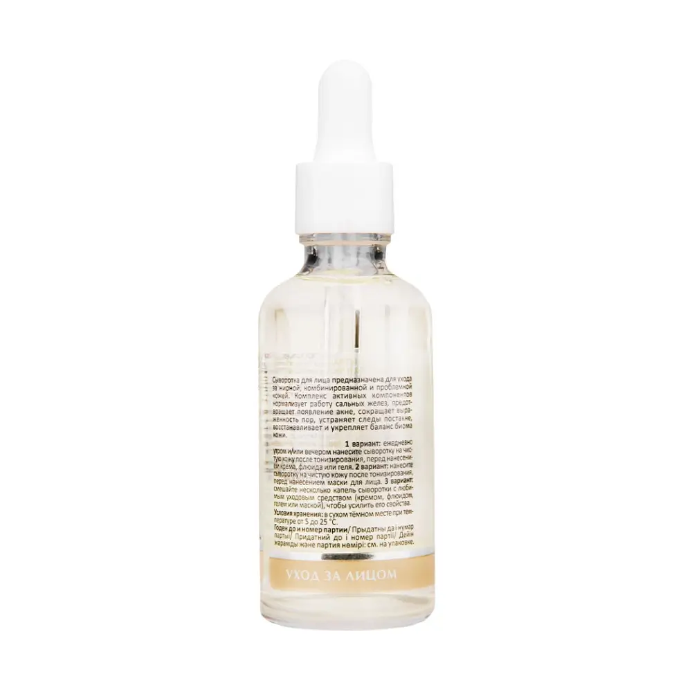 Сыворотка для лица предназначена для ухода за жирной, комбинированной и проблемной кожей. Комплекс активных компонентов нормализует работу сальных желез, предотвращает появление акне, сокращает выраженность пор, устраняет следы постакне, восстанавливает и укрепляет баланс биома кожи. Подходит для ежедневного применения.