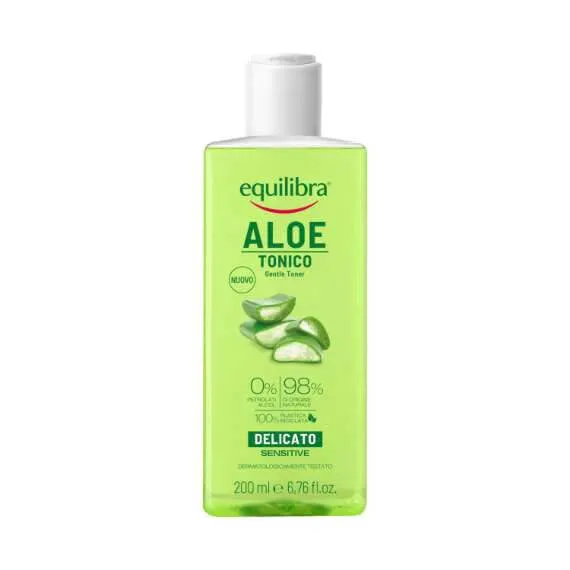 Equilibra ® Aloe Tonic — нежная, легкая и не содержащая спирта жидкость на основе 100% чистого алоэ вера и провитамина B5. При ежедневном использовании удаляет все следы макияжа и загрязнения без необходимости смывания, оставляя кожу гладкой и упругой.