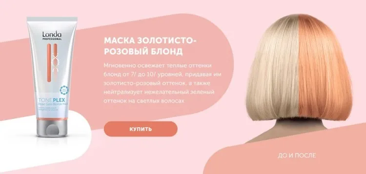 - мгновенно освежает теплые оттенки блонд от 7/ до 10/ уровней, придавая золотисто-розовый оттенок