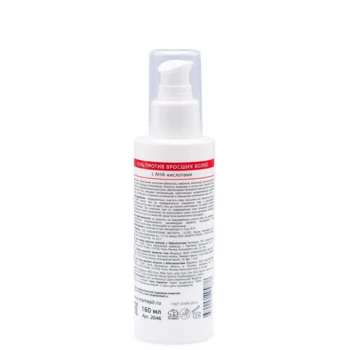 Мягкий гель предотвращает врастание волос после биоэпиляции. Комплекс AHA-кислот – яблочная, лимонная и молочная – устраняют фолликулярный кератоз, облегчая рост молодых тонких волос.