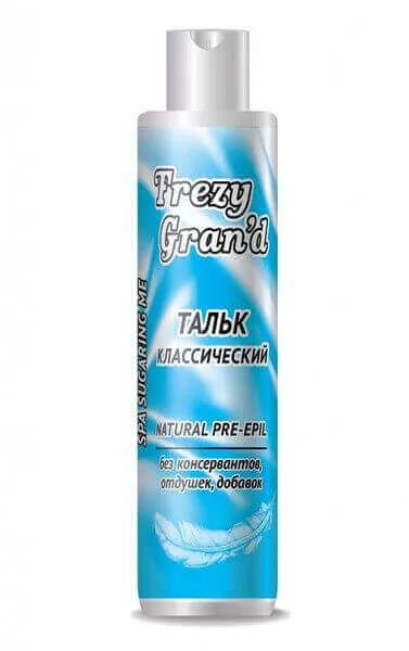 Действие: Профессиональный препарат. Применяется непосредственно перед депиляцией: нанесением сахарной пасты или горячего/пленочного воска на этапе подготовки кожи. Тальк предназначен для повышения эффективности проведения процедуры сахарной или восковой депиляции. Улучшает сцепление сахарной пасты или воска с волосом, приподнимает волоски, что позволяет провести процедуру быстро и качественно, впитывает излишки влаги. Защищает кожу от раздражения и предохраняет от нагревания во время процедуры. Тальк обладает мелкодисперсной структурой, благодаря чему не забивает поры и предотвращает врастание волос. Создает защитное покрытие для кожи, предохраняя ее от нагревания. Легкая и шелковистая структура талька позволяет коже дышать, оказывает дезодорирующее действие. Не способствует аллергическим реакциям, имея абсолютно гипоаллергенную формулу. Способ применения: нанести тальк тонким слоем на предварительно очищенную поверхность кожи и равномерно распределить мягкой салфеткой. Хранить при комнатной температуре в сухом месте. Не допускать попадания влаги внутрь флакона.