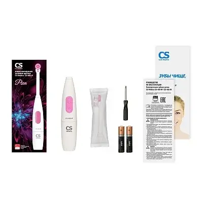 Электрическая зубная щетка CS Medica CS-466-W работает от 2-х элементов питания типа ААА. В комплекте поставке имеется специальная отвертка для открытия\закрытия батарейного отсека.
